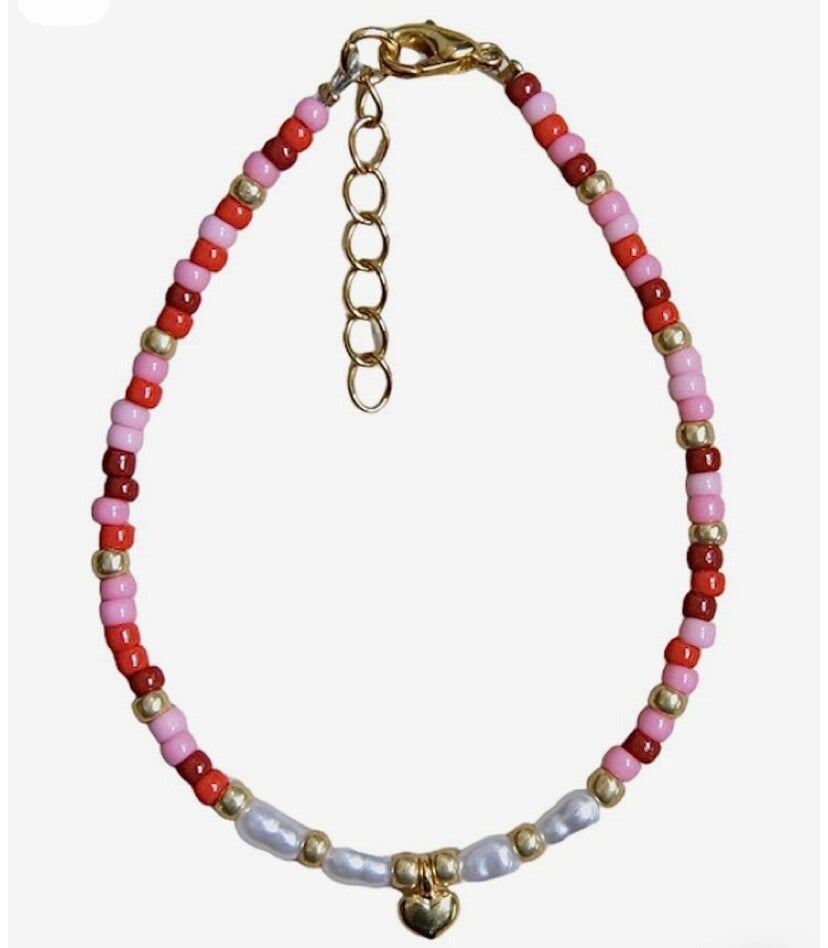 - kralen armband met zoetwaterparels en hartjes bedel