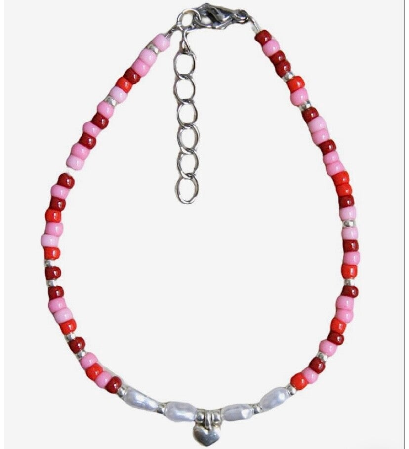 - kralen armbandje met zoetwaterparels en hartjes bedel